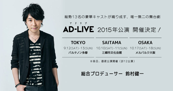 2014年公演では約1万人を動員し、多くの感動と衝撃を生んだ舞台「AD-LIVE(アドリブ)」の、2015年公演が決定!